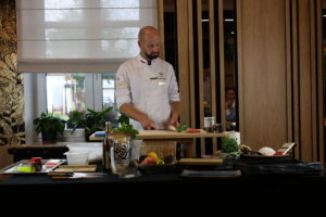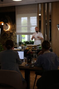 „Teatr serwowany” to autorskie doświadczenie kulinarne, w którym gotowanie staje się widowiskiem. W specjalnie zaplanowanych momentach wieczoru, szef kuchni wychodzi na salę i przygotowuje wybrane dania na oczach Gości – dzieląc się swoją pasją, historią potraw i kulinarnymi trikami.